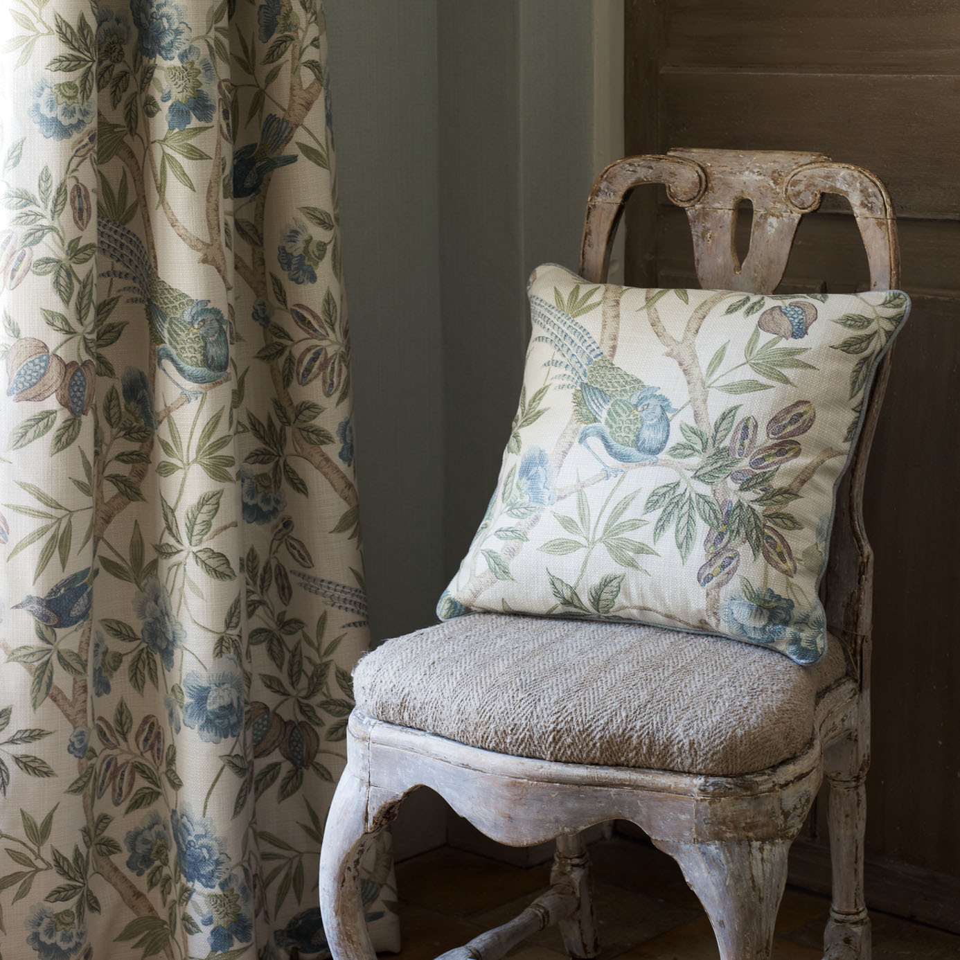 Breathtakingly beautiful, this fantastical trailing fabric design was inspired by a late 19th century block printed document from the archive. The tree of life combines coffee beans, pomegranates and exotic pheasants and brings the brings the garden into your home.