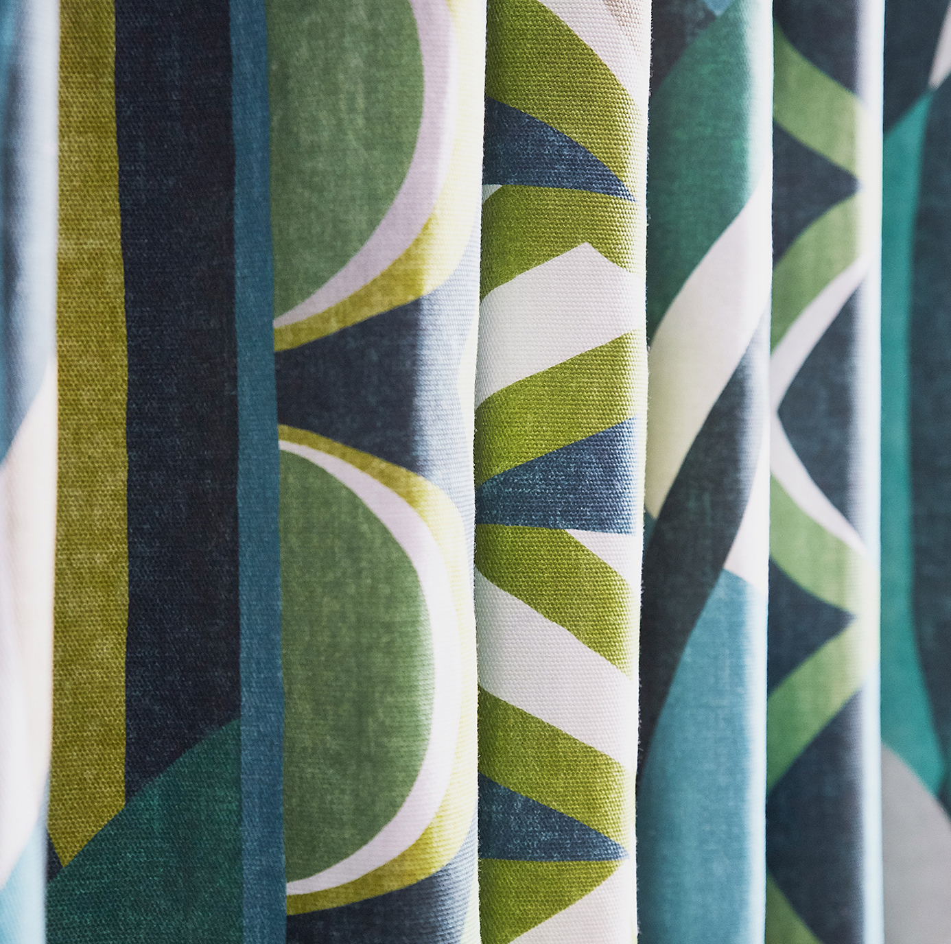 The lead design of this collection, Atelier was inspired by a vintage scarf from the 1970's. Drawn by hand, these bold geometric textural shapes are coloured in confident tones.