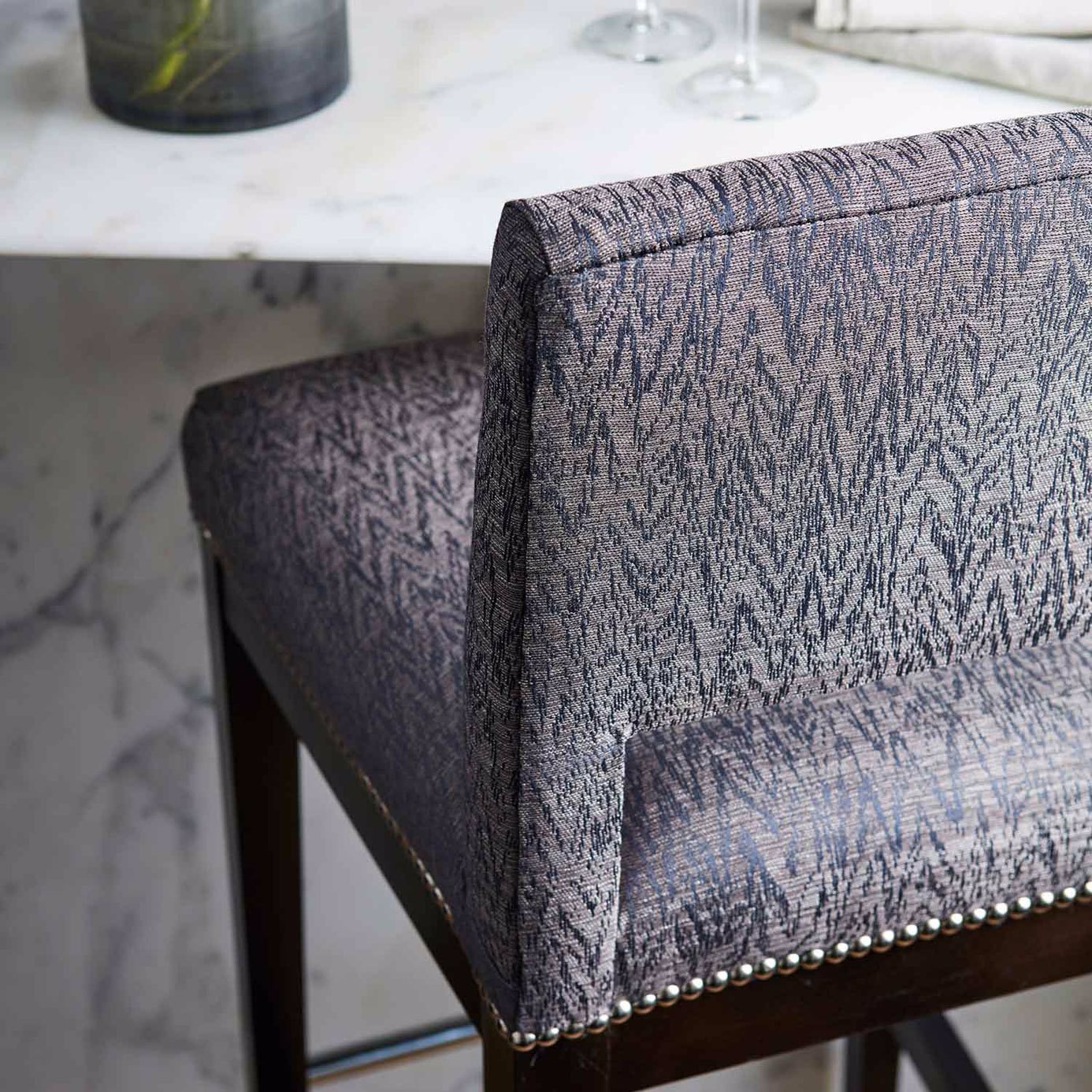 Textúrna periečková látková vzor vhodný na čalúnenie a zdobený lesklým kovovým.