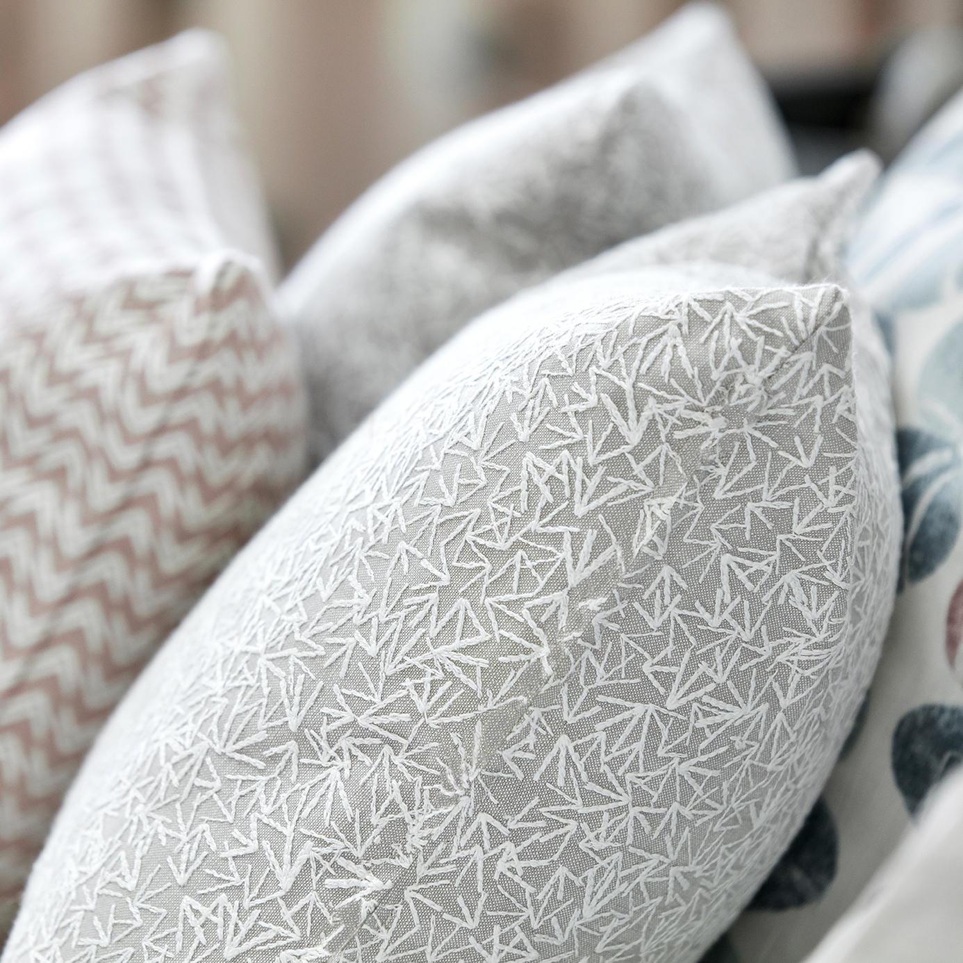 The delicate footprints of shorebirds are embroidered all over this versatile cotton-mix fabric design. A beautiful choice for upholstery, blinds, drapes and cushions.