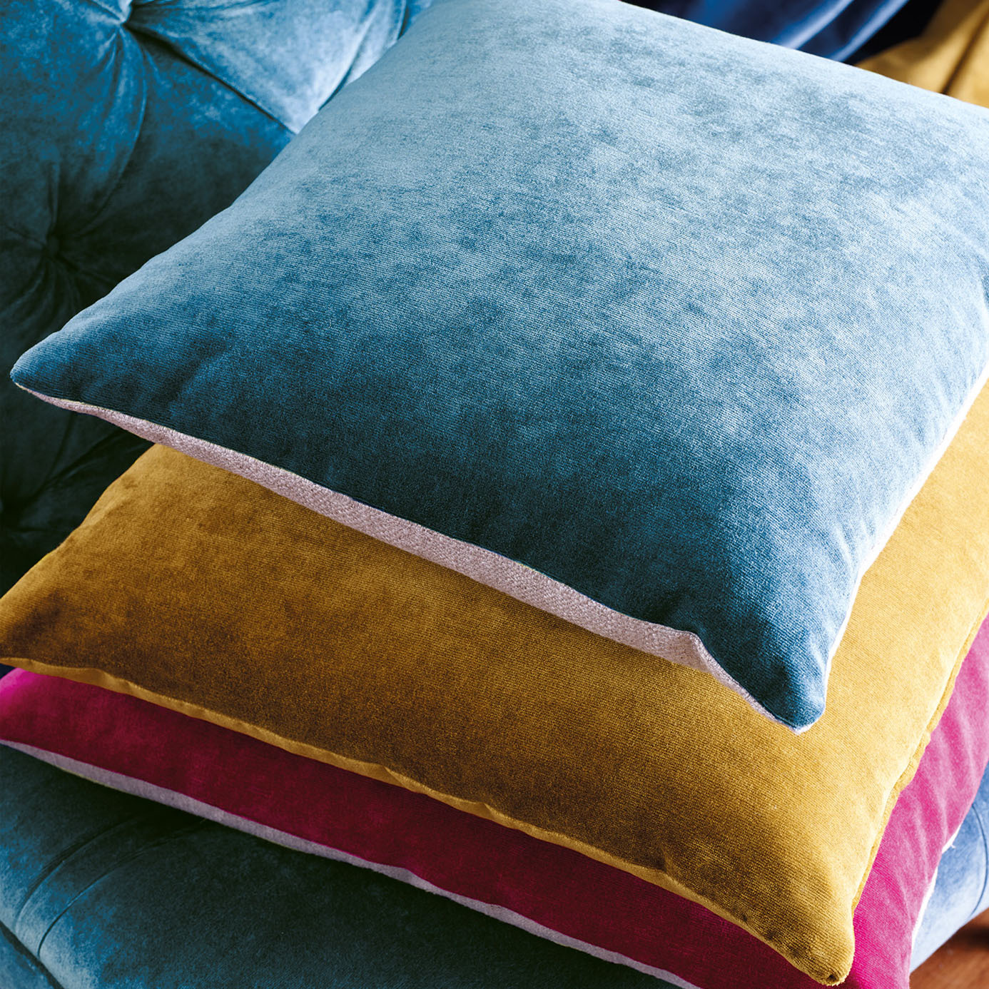 A sumptuous viscose cotton velvet in twenty-two vibrant jewel-like colours. It is visually decadent with a lovely soft textured handle with a beautiful drape quality. At the same, this luxurious fabric is extremely hard wearing and can be used for severe contract furniture.