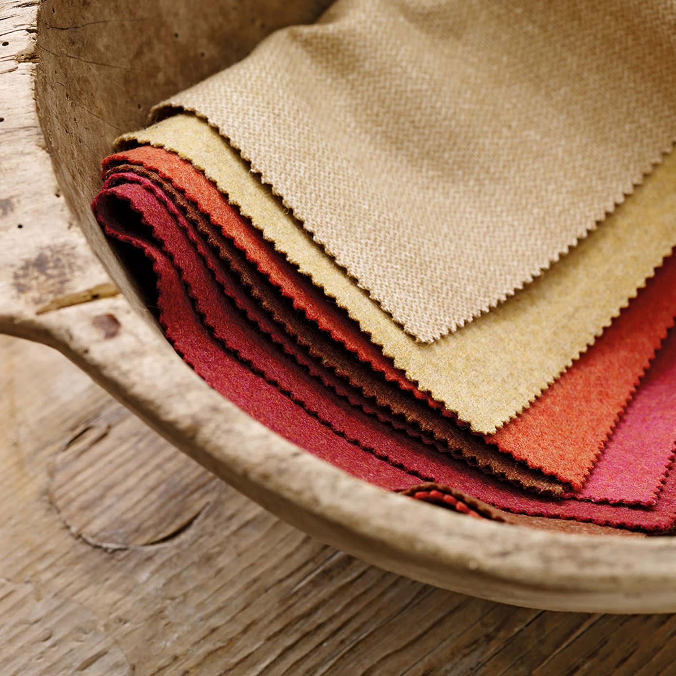 A luxurious, felted wool fabric in a vast array of forty-two sensual colours, this reversible plain, with shots of the Sojourn' bohemian colour palette running through as an accent, is suitable for contract upholstery as well as curtains.