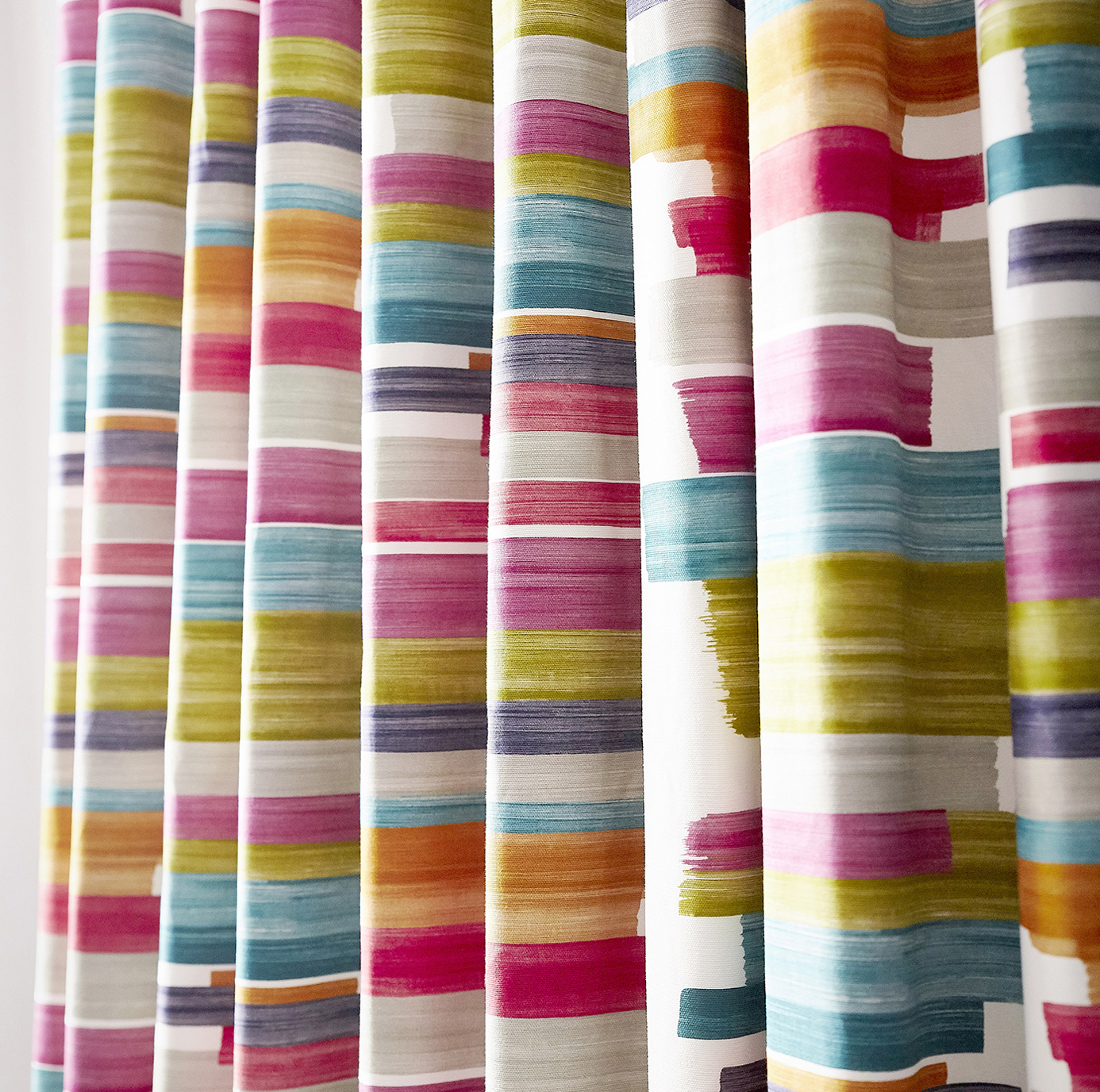Lovely long horizontal brush marks create three bold vertical stripes in this great colour carrier from Harlequin Atelier. A useful print from which to coordinate accent colours, this design really brings a scheme together.
