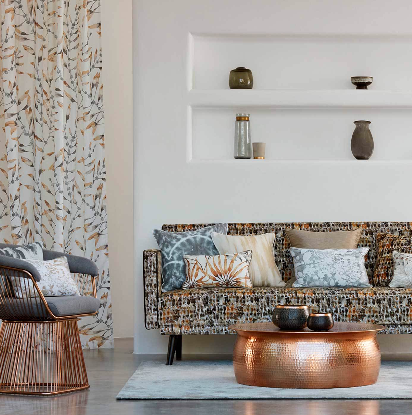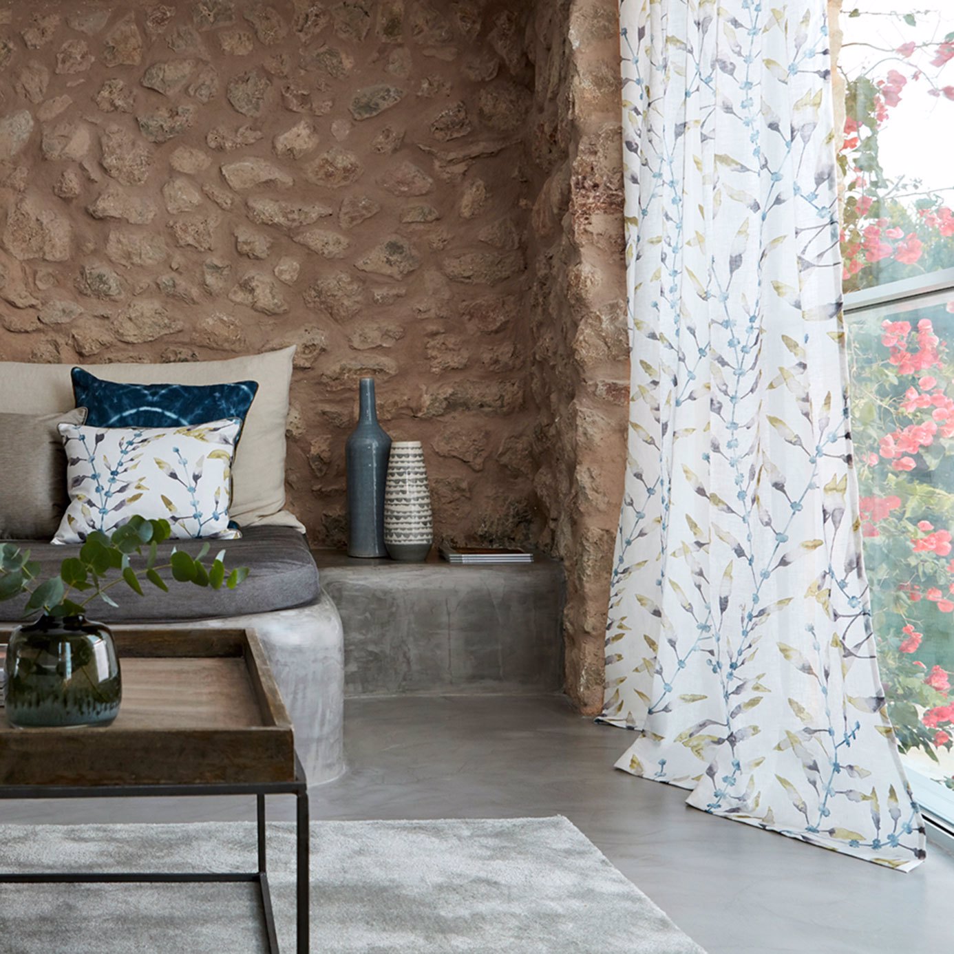 Anthozoa Fabrics - Chaconia. This fabric depicts a trail of a delicate sea plants on a plain background and has a wonderful sense of gentle movement. Team with the wallpaper of the same name.