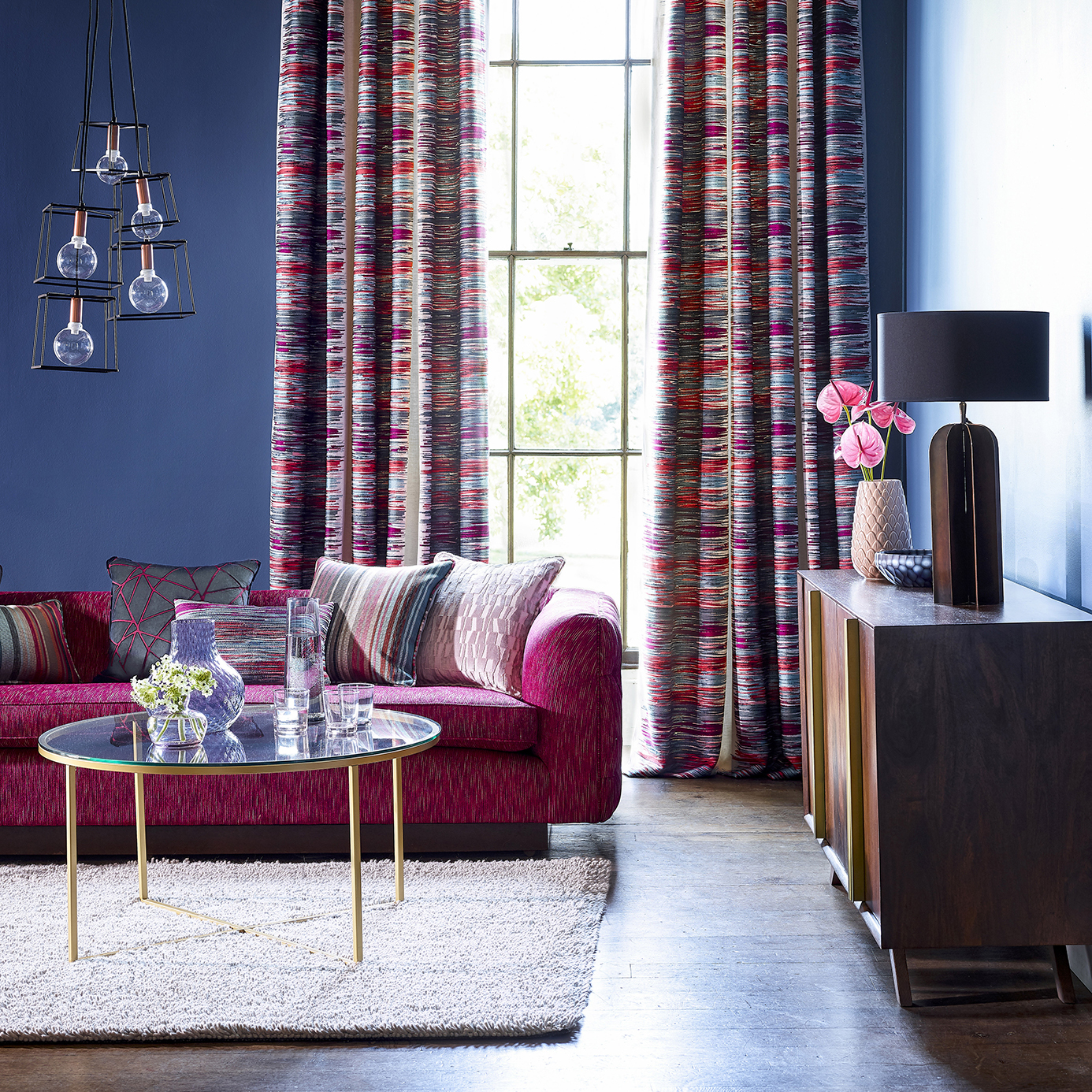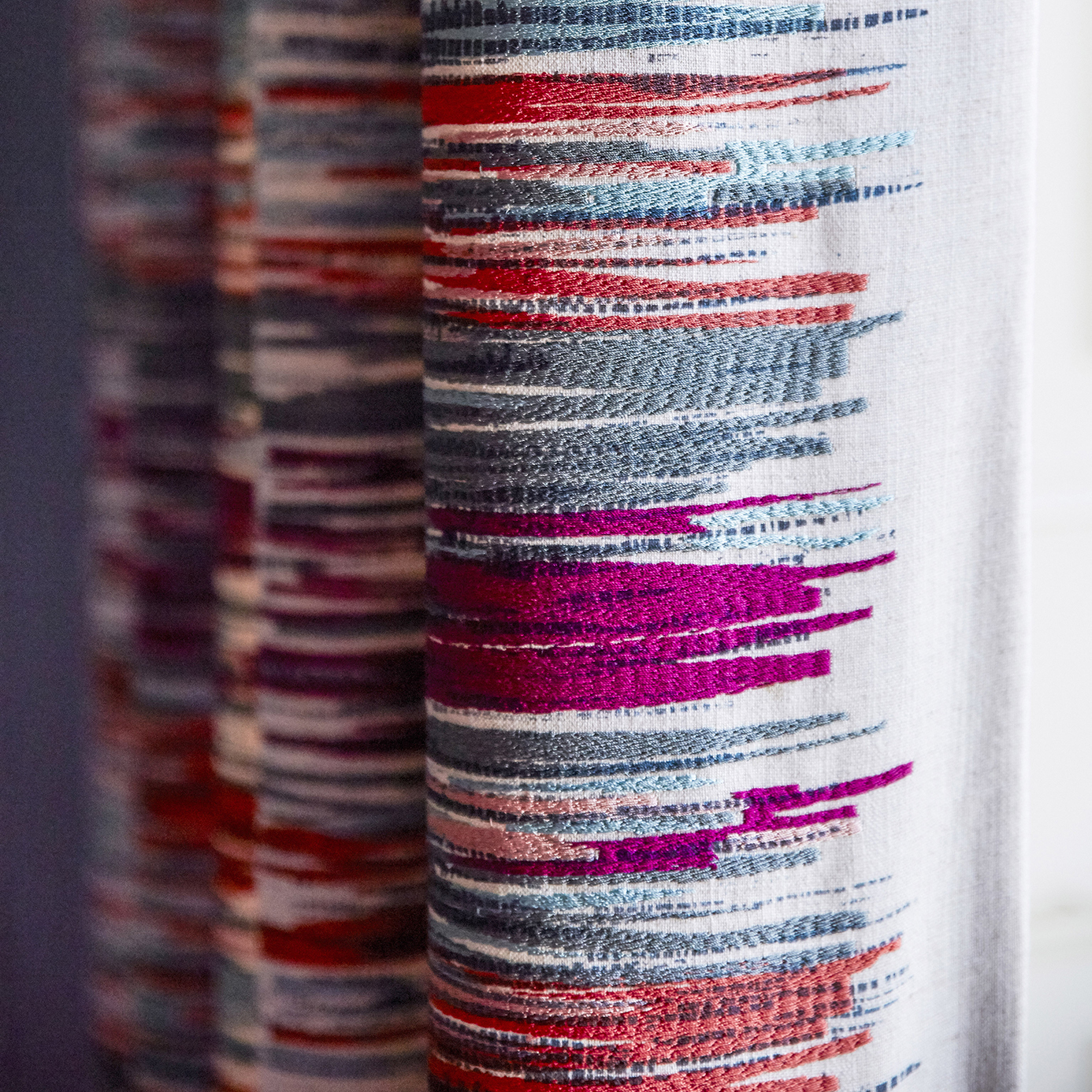 Introduce texture with Chromatic from Harlequin Momentum, a large scale abstract pixel stripe depicting an innovative multi coloured print and embroidery technique.