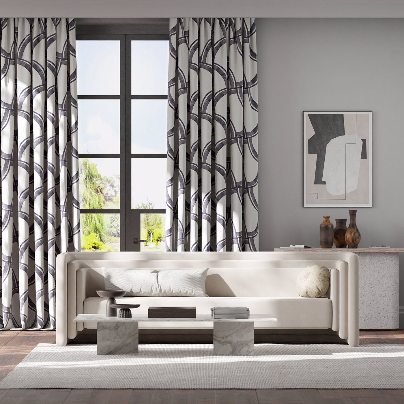 This fabulous large scale interlocking geo is a lovely, slightly quieter way to make a statement. Ideal for curtains, it's easy to live with and wonderfully versatile. Displaying a beautiful drape, Cognate works across many different styles of scheme and is embroidered on a cotton mix ground.