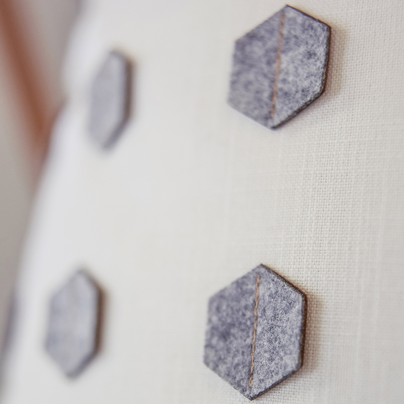 A neat, small scale felt applique design with a contrasting satin applique reverse.