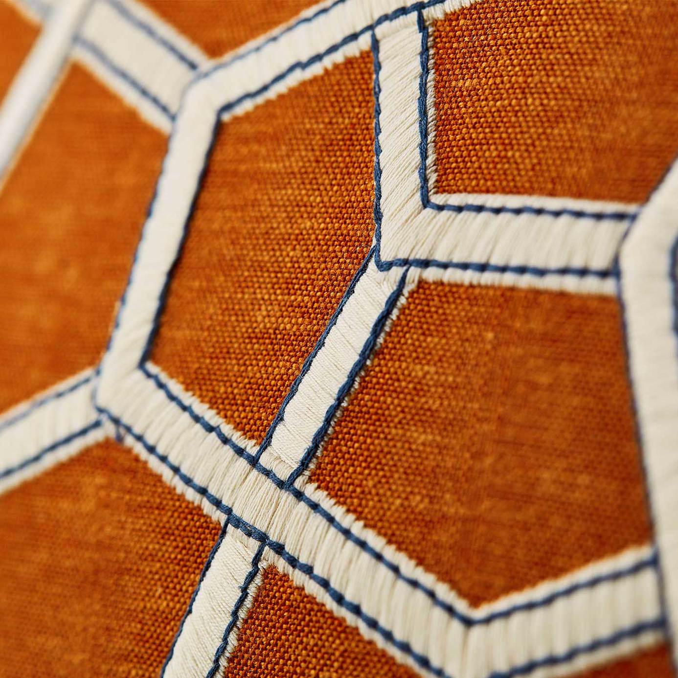 A smaller variant of Glyptic its honeycombed counterpart, Cubica's heavy stitch embroidery and contrasting edge give this design an almost 3D feel.