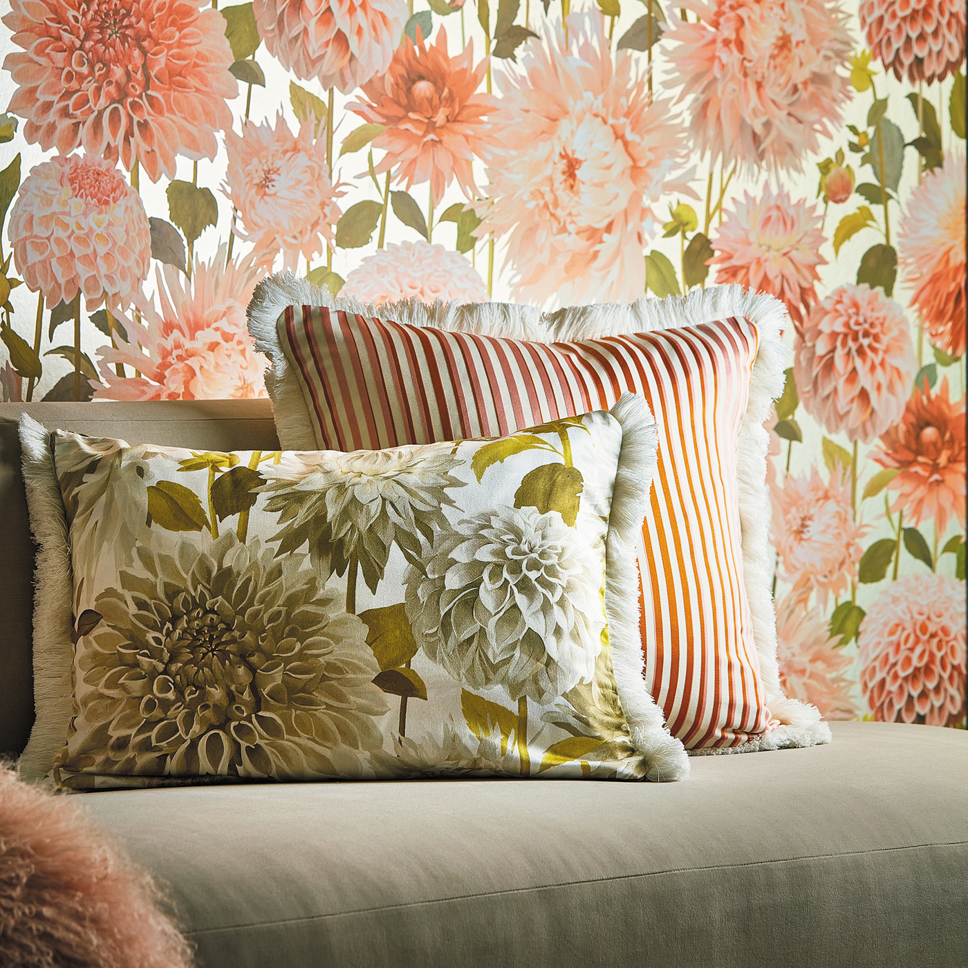 A stunningly detailed display of one of our favourite flowers, this hand painted design is definitely best in show! Subtle variations of colour highlight the intricacies of each individual dahlia bloom, printed on 100% cotton satin.