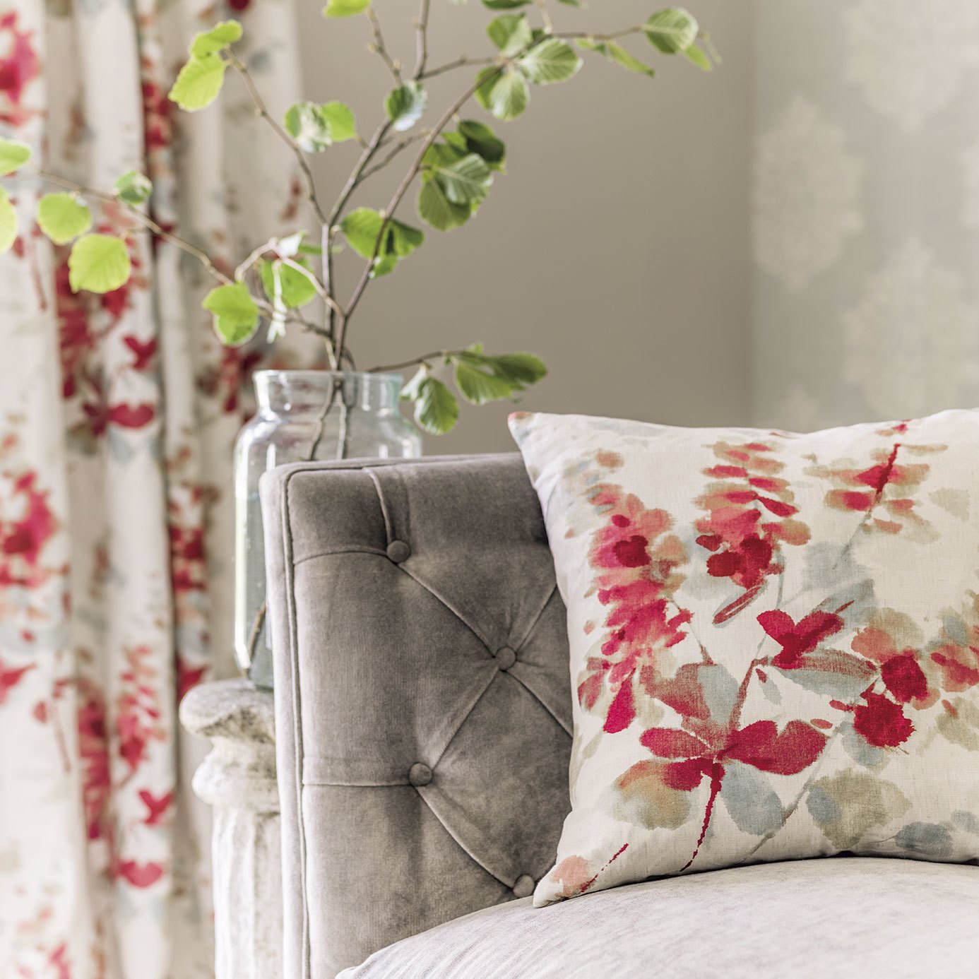 This painterly, abstract floral fabric design is painted with energetic brushstrokes in vibrant colourways - bringing a sense of organic energy into the home.