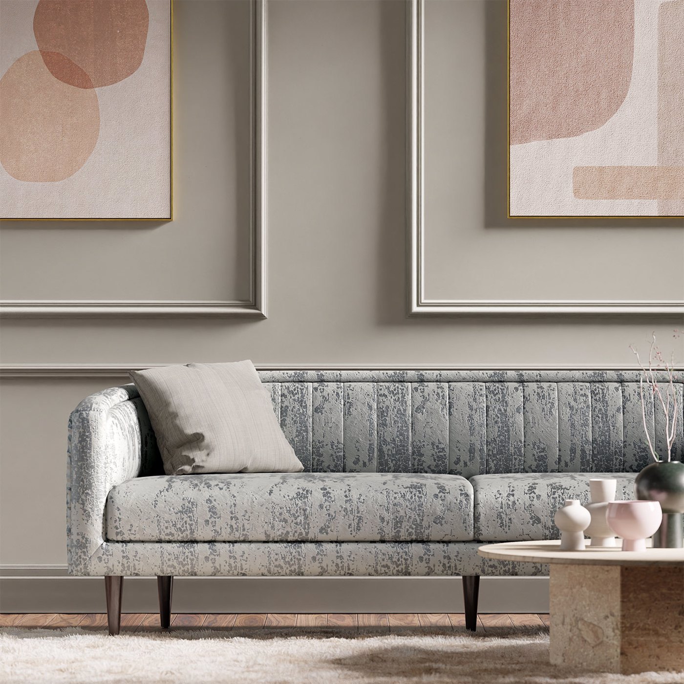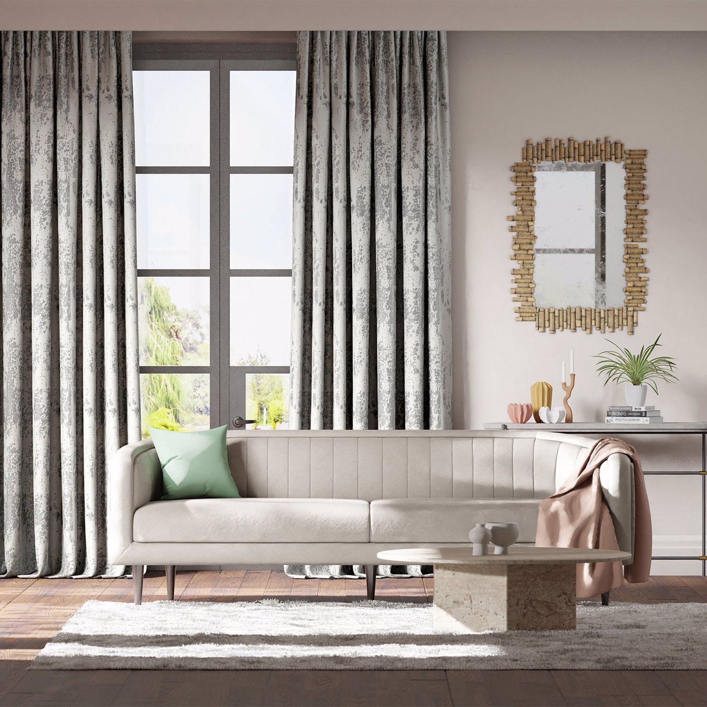 Leonida Velvet - Eglomise. Ako už názov naznačuje, ide o úchvatný textil z poškodenej textúrovaného zamatového materiálu s jedinečným vzhľadom églomis, dostupný vo veľkom množstve farieb. Je vhodný pre záclony, vankúše a čalúnenie, tento textil dopĺňa vzorované látky a tapety v kolekcii.