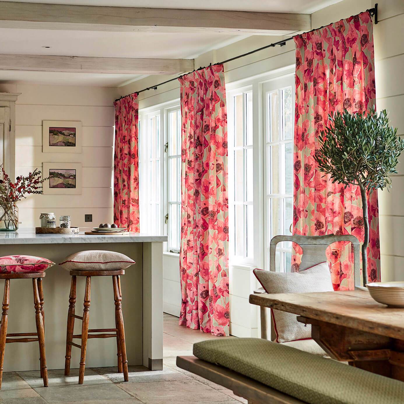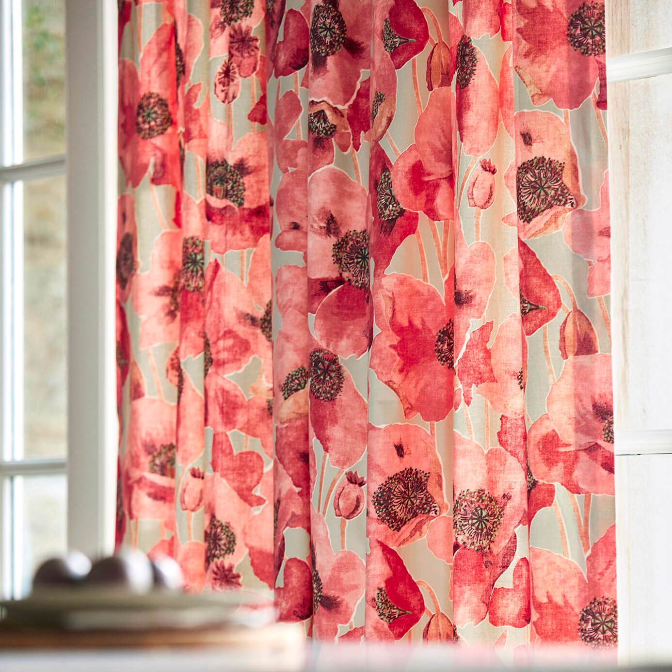 Created by tearing tissue paper to replicate the translucent vivacity of poppy petals, this exuberant 100% cotton fabric design creates a picture of wind-swept poppies in abundant full bloom.