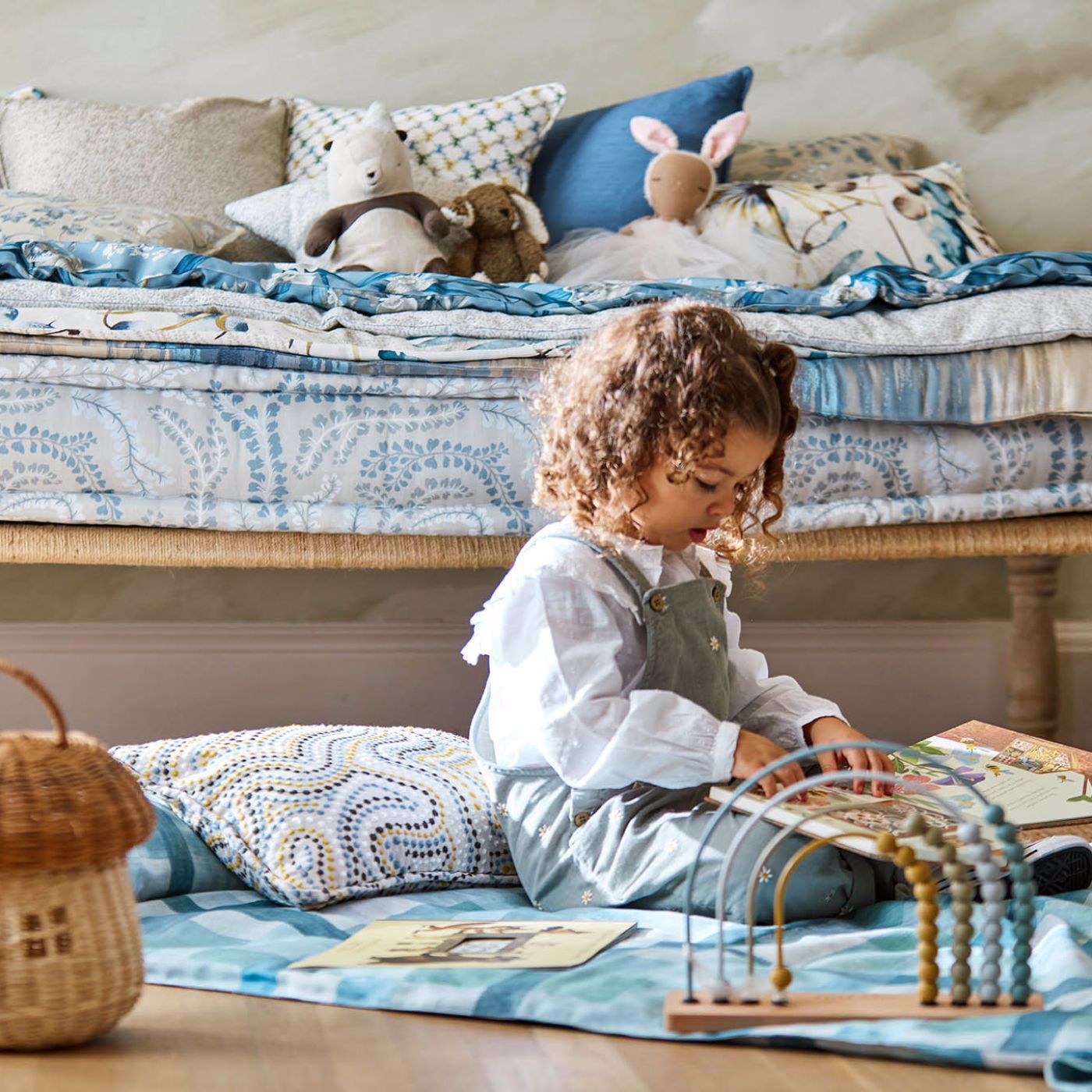 Ertha is an original screen printed contemporary check, crafted using natural dyes such as elderberry, red cabbage and logwood. In two nature inspired colourways, subtle inky irregularities run across the soft fabric, alluding to its handmade origins.