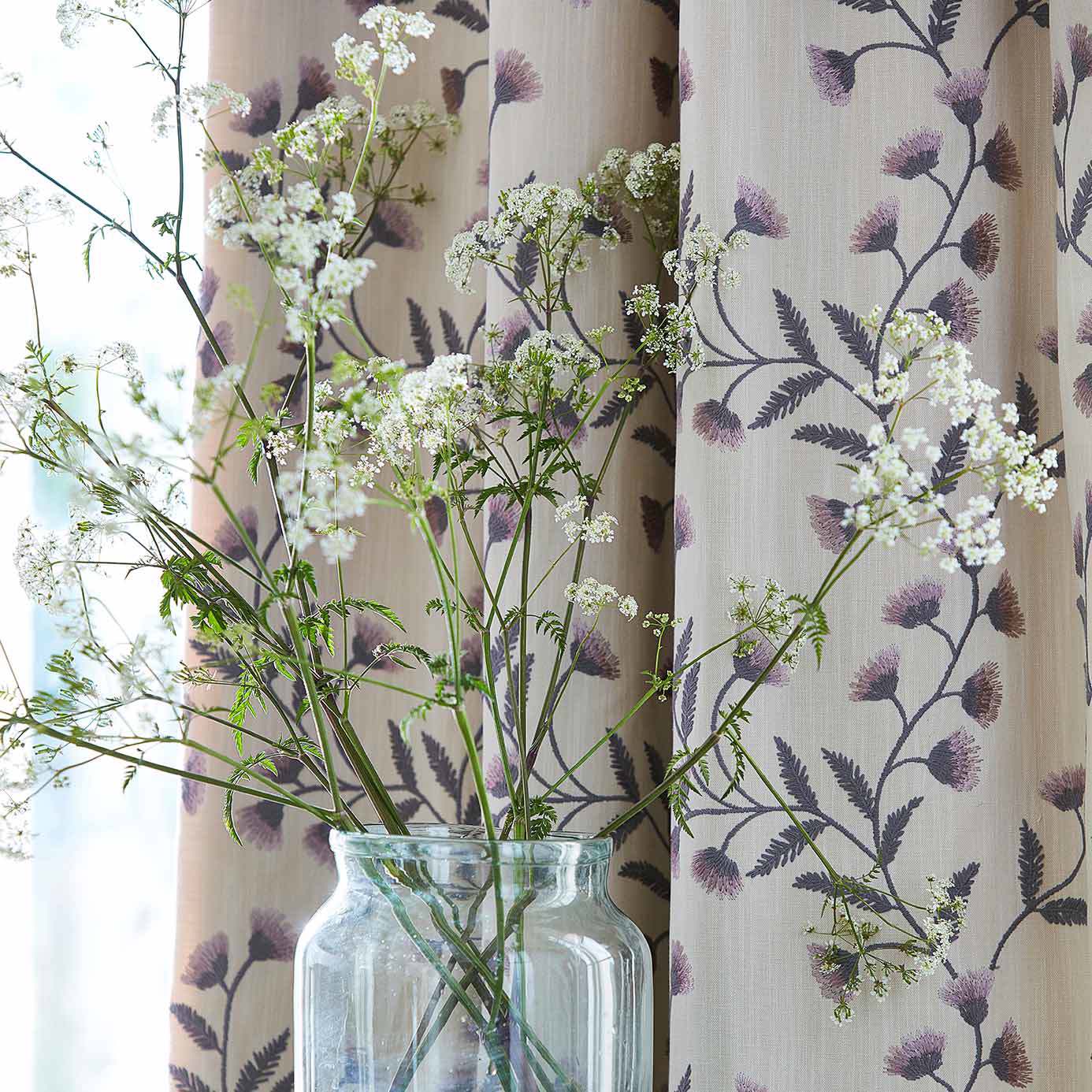 A delicately embroidered trail of flowering wild chamomile, this fabric plays with matt and shine and is a beautifully elegant addition. Team with the wallpaper of the same name for a contemporary country look and use on curtains and drapes.