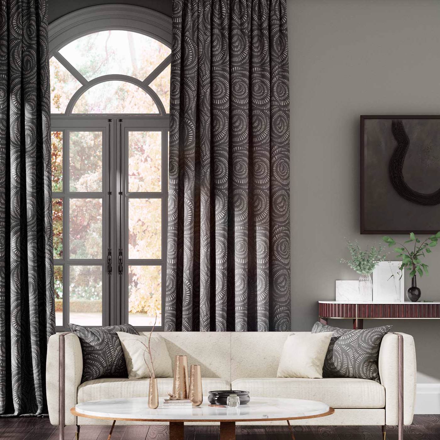 Tkanina s dramatickým vzorom vo forme špirály pripomínajúcej fosíliu je tkaná na štruktúrovanom podklade pre sofistikovaný finiš. Je vhodná na záclony a poťahy a je dostupná v atraktívnych farebných odtieňoch.
