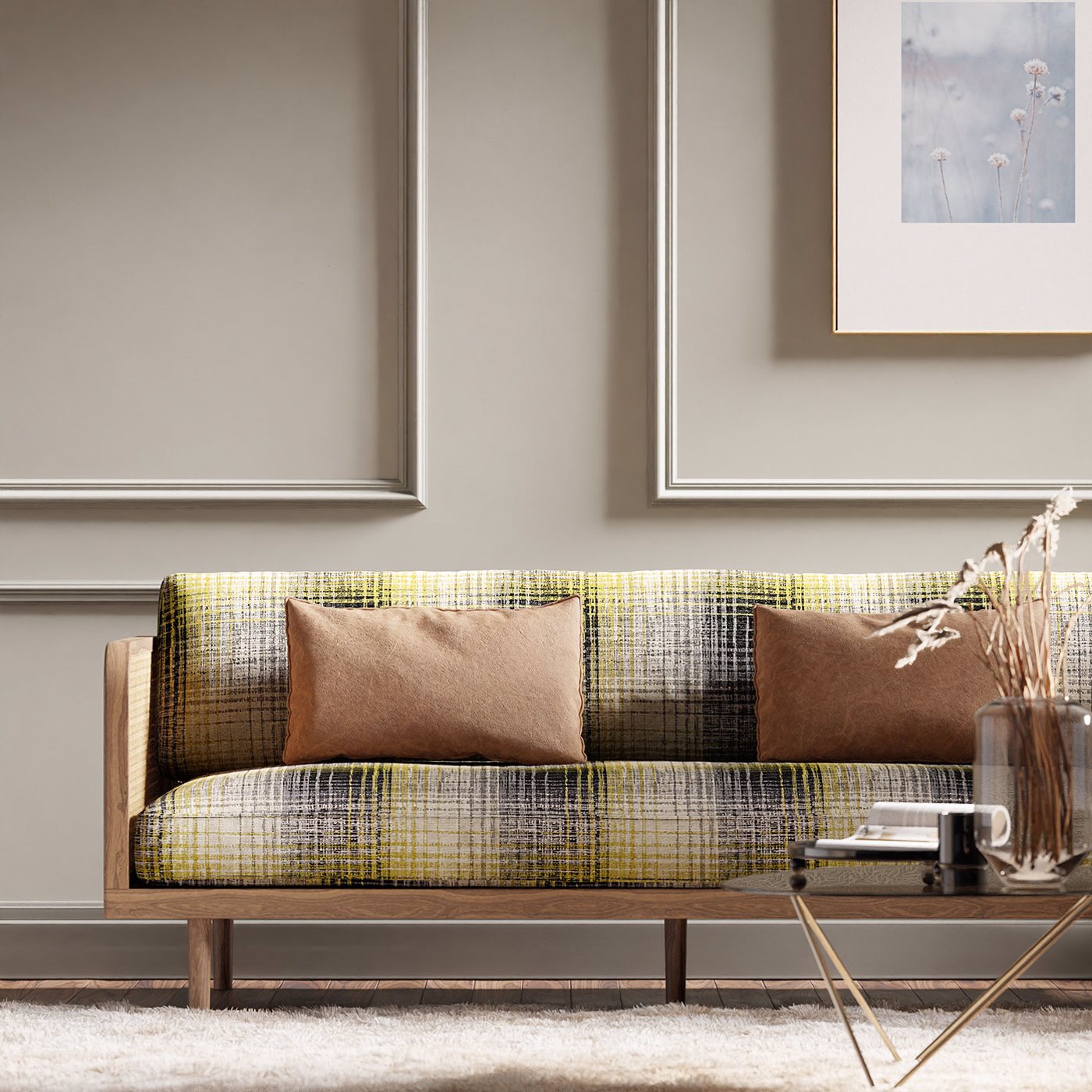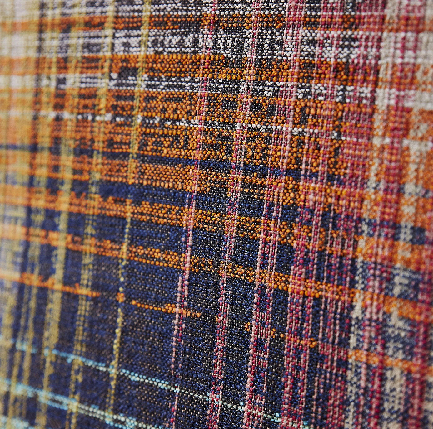 Hamada Weave - Hamada. Celebrating the check, this fabulous large-scale plaid fabric displays a wonderful blend of colours from blue/green tones through to bursts of pink and forms a relaxed, painterly checked pattern suitable for curtains, blinds and upholstery in contemporary homes and classic snugs.