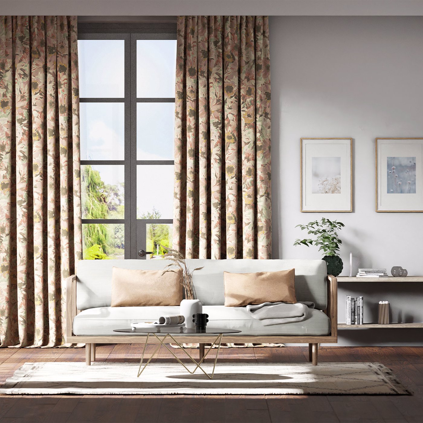 Turning their heads towards glamorous interiors, impressionist sunflowers adorn this free-spirited print. Hand drawn in the Harlequin studio using pastels and paints, choose from two softer palettes printed on cotton/linen or a brighter scheme printed on dual purpose cotton velvet.