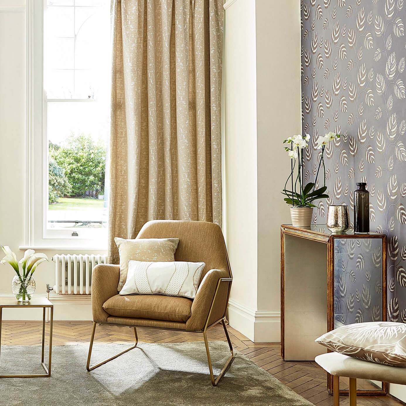 Paloma Fabrics - Lucette. Tkanina Lucette je jemne textúrovaná s dotykom sofistikovaného žiarivého pozadia. Ideálna voľba pre závesy, ktoré doplnia viac figúrnych dizajnov kolekcie Paloma a tapetový vzor rovnakého názvu.