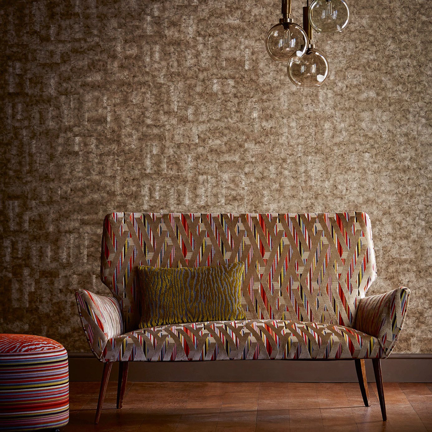 A strong abstract geometric design in multi brights.