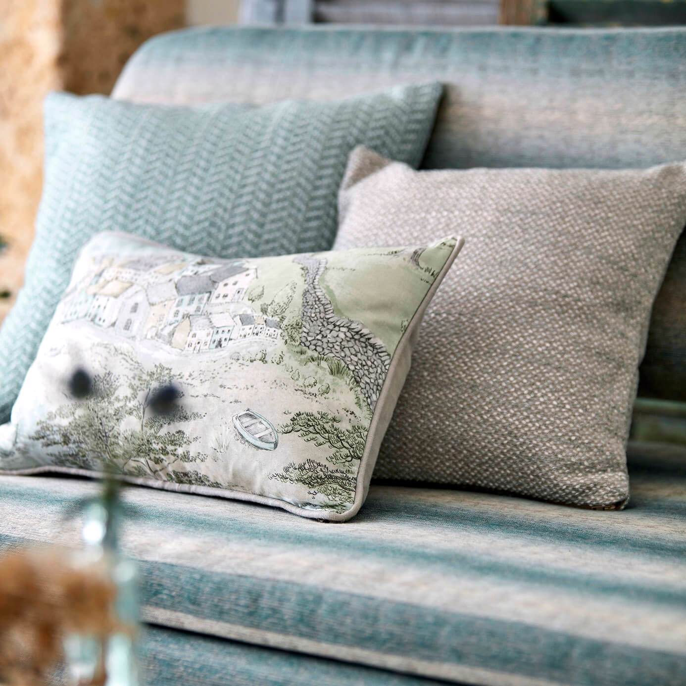 Accurately depicting sea mist as it hovers on the horizon, this deconstructed and graduated horizontal stripe fabric, has been carefully crafted on a jacquard loom. A smart look for upholstery and curtains.