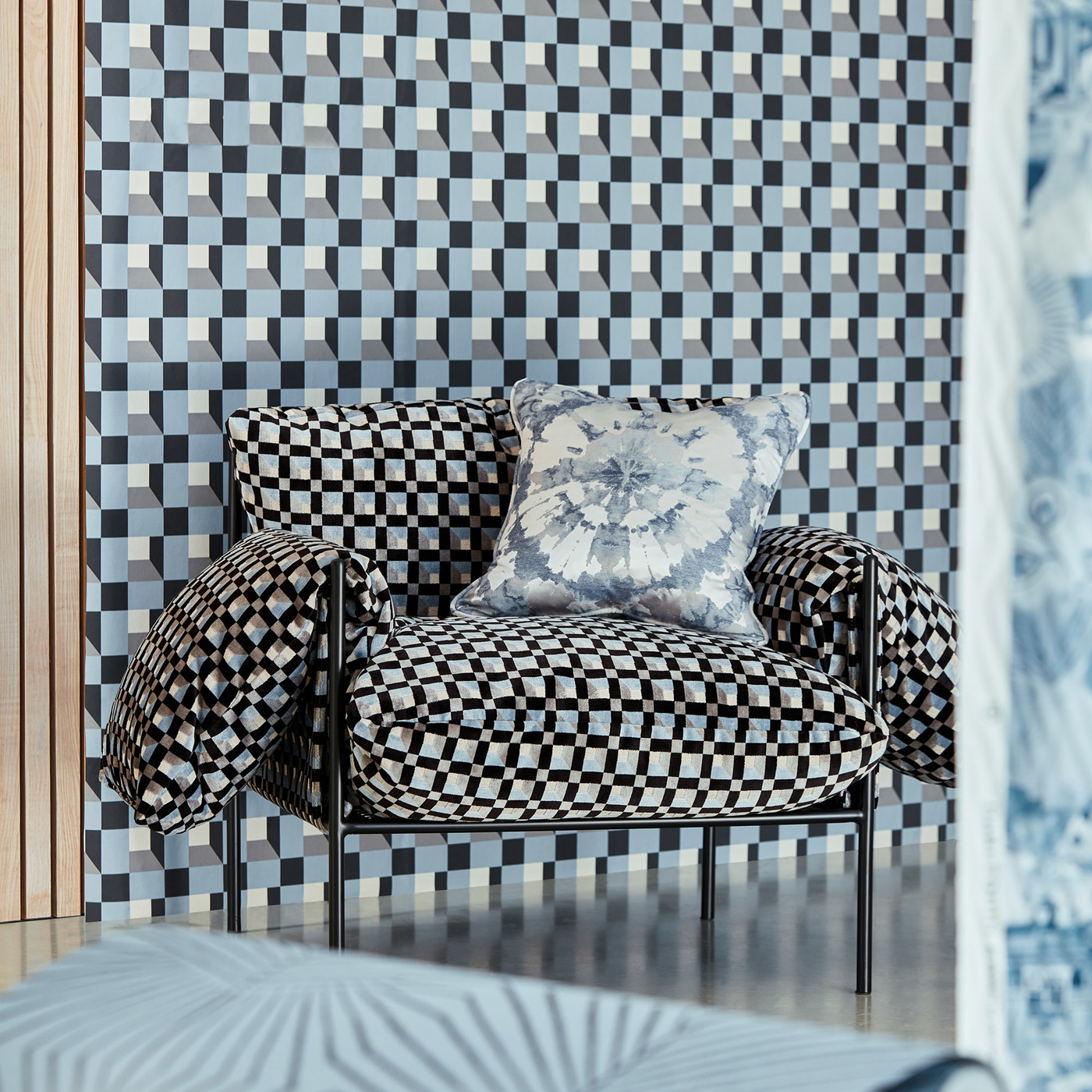Meaning water in Japanese, Mizu is a woven take on a traditional shibori. Representative of traditional tie-dye method, matt threads contrast against the subtle water like shimmer of the fabric's ground, creating a large scale patten and a kaleidoscope-esque effect.
