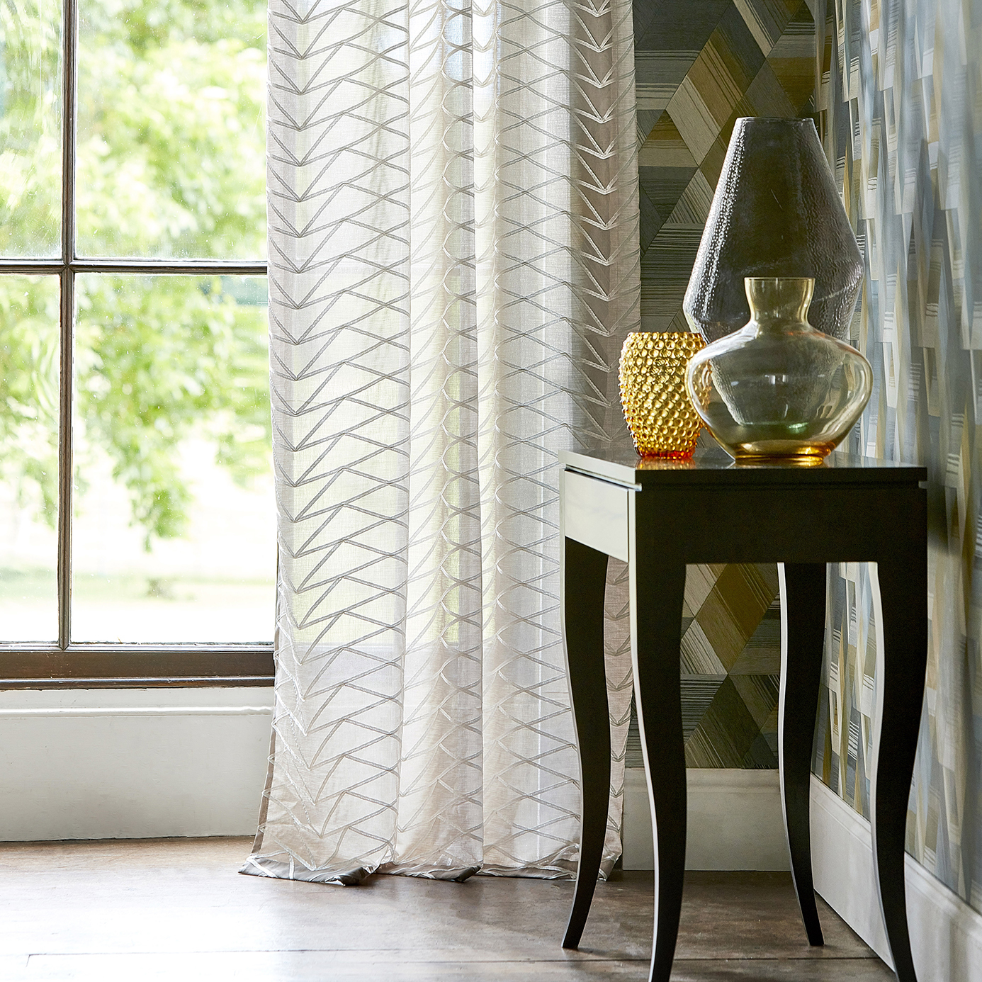 Taken from Harlequin Momentum's Kienze design, this beaded silhouette in three shimmering metallic colourways brings an opulent feel to this stylish wallpaper.