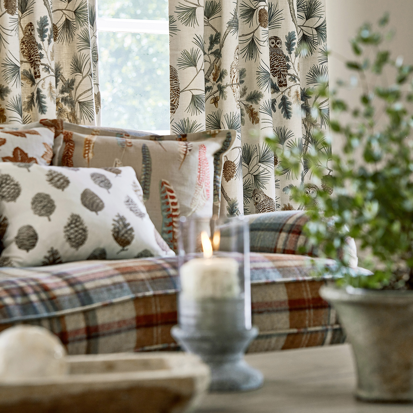 This elegant cotton-linen mix fabric displays a snowy owl, the symbol of wisdom and helpfulness, and retains the intricacies of the original artwork. The soft colourways look splendid alongside chalk walls and woven plains, or team with the wallpaper of the same name.