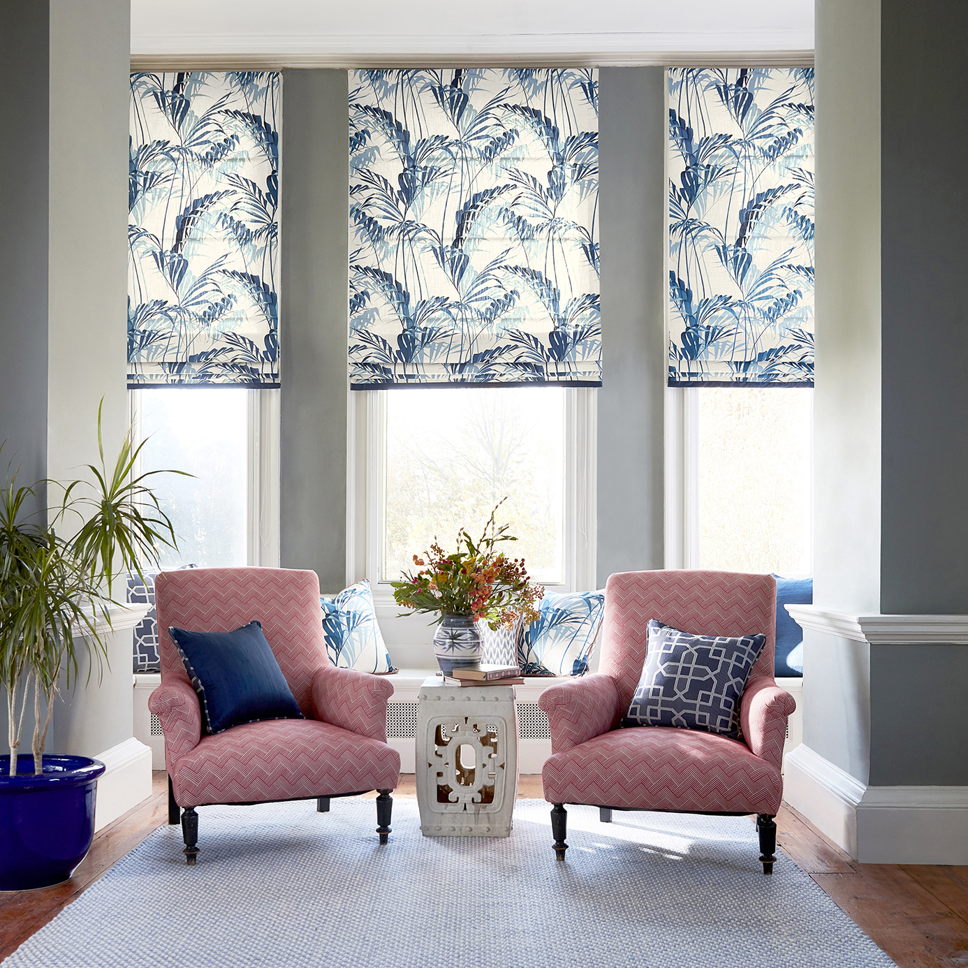 This design's curving foliage makes an oasis of even the most modest interior, with an elegant arrangement of palm leaves and silhouetted shadows in an array of exuberant colours.