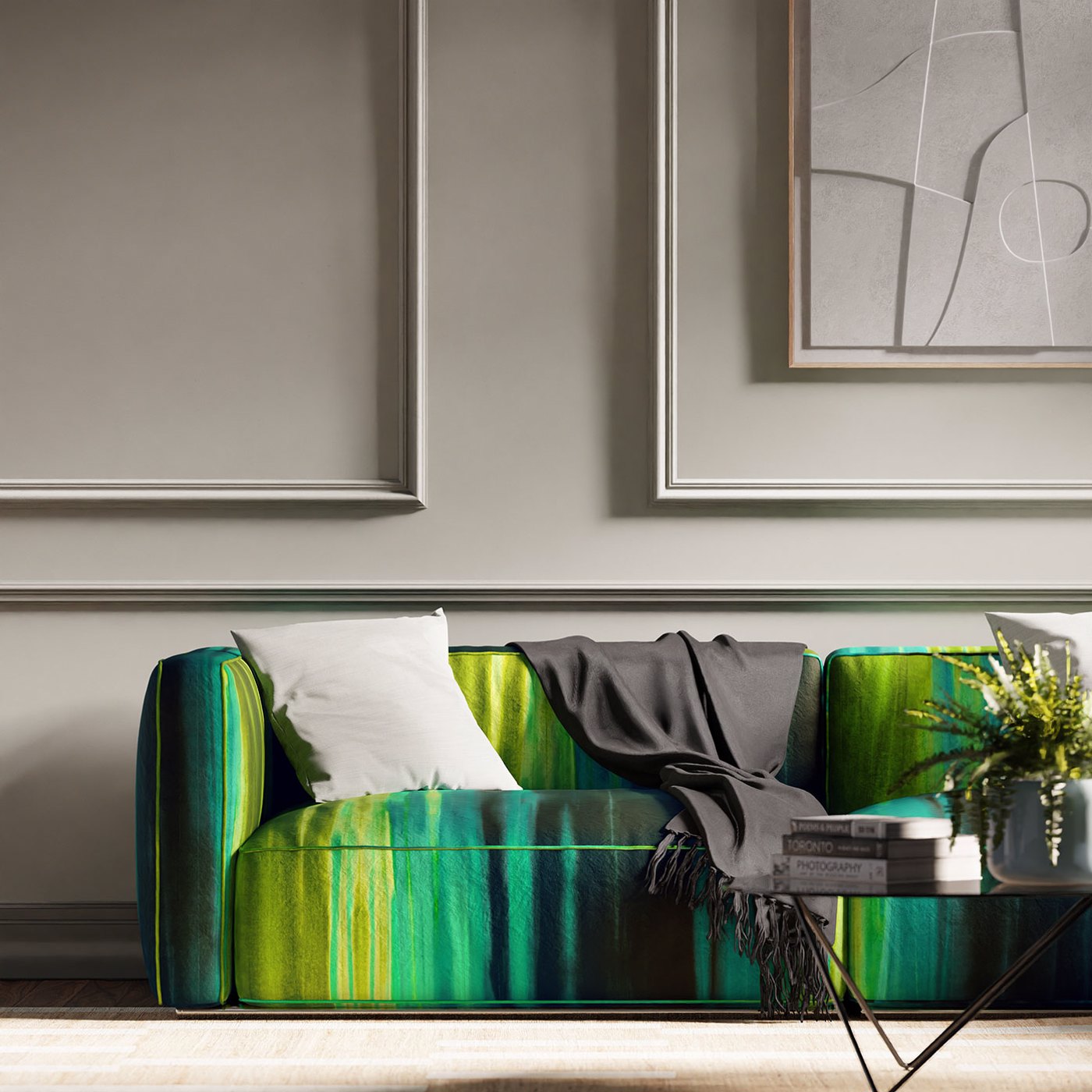 A gorgeous ombre of colour, whether sunset, sunrise or gently rippling waters, Rewilded takes its inspiration from the natural landscapes that surround our coasts. A fantastic colour carrier, its atmospheric layers are printed on luxurious dual purpose cotton velvet.