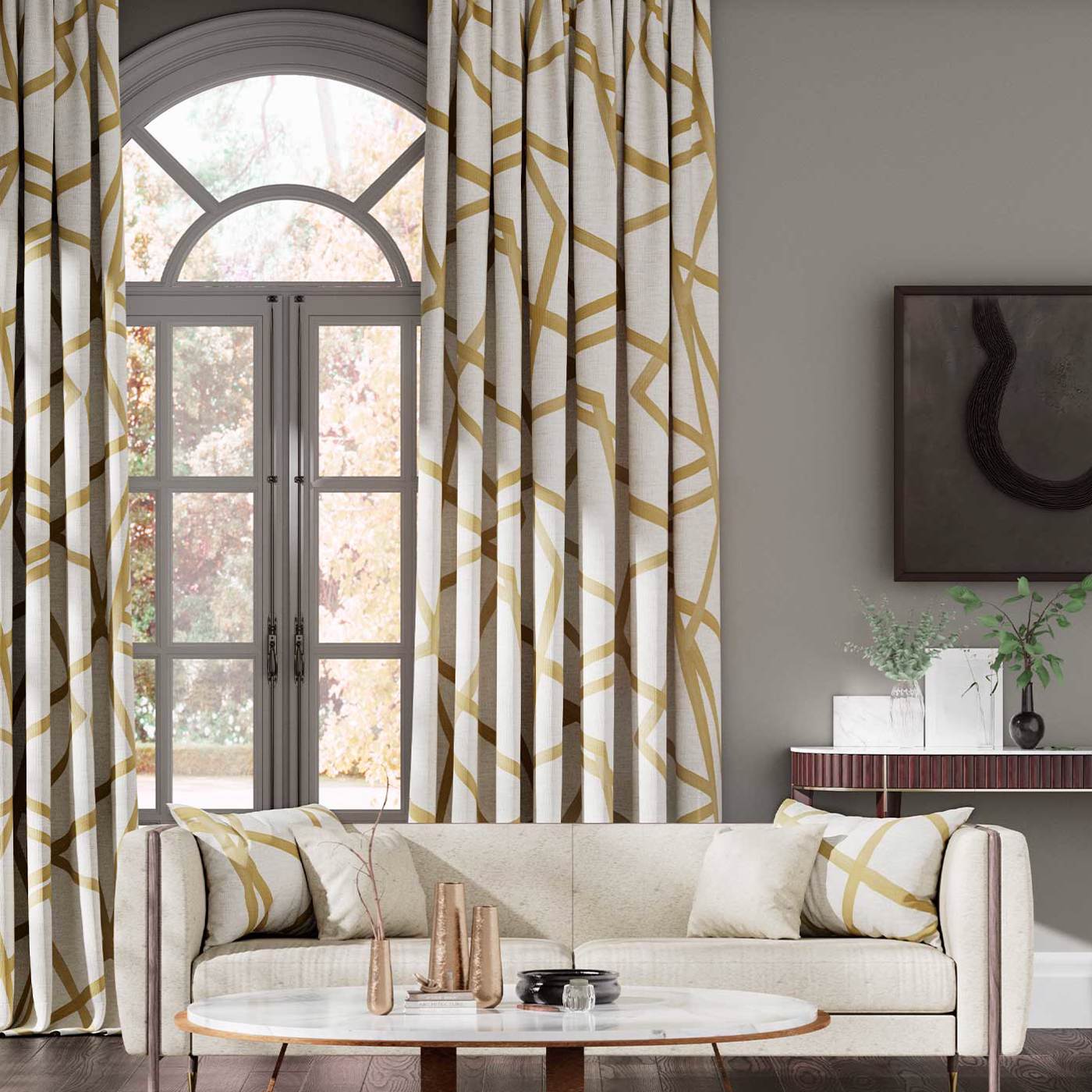 An iconic Harlequin design translated into a printed fabric for the first time, this striking large scale geometric has an abstract architectural feel.