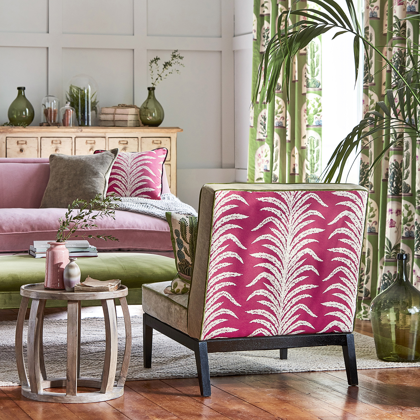 A soft draping jacquard quality suitable for curtains and upholstery, this simply textured tree fern is silhouetted against a silky ground colour, offering elegant style and beautiful colour combinations whether used alone or in combination with The Glasshouse's prints and wallpapers.