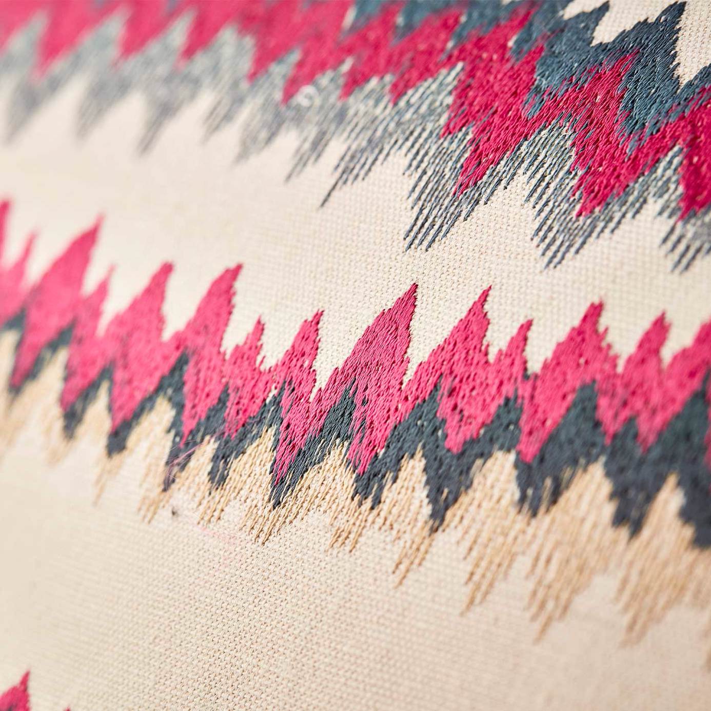 Close up rock formations capture the imagination in this Harlequin design, where embroidered layers weave across a matt woven ground. A delicate shine reflects the light in the yarn pattern.