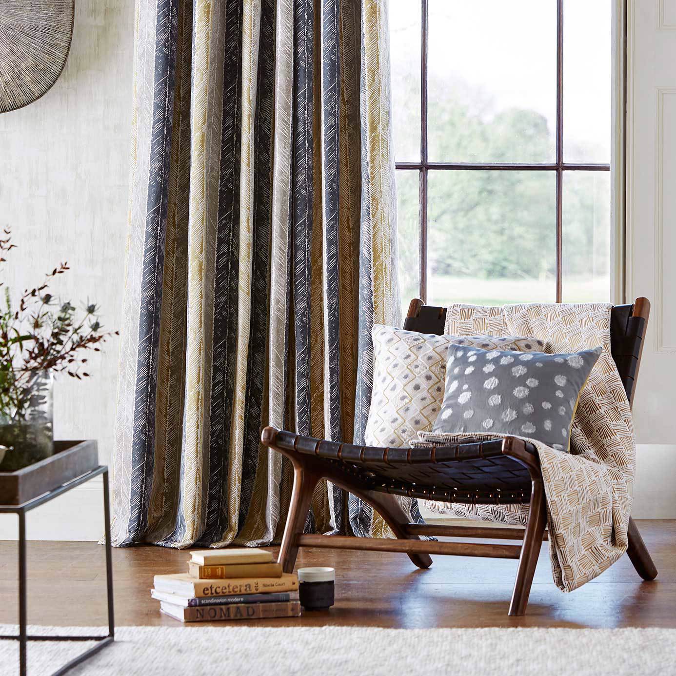 Fragmenty od značky Harlequin Additions - Walachia. Riadky dekonštruovaných šípov v koordinovaných farebných odtieňoch sa zaradia do vertikálneho pruhového látkového vzoru, ktorý vytvára sofistikovaný dojem. Táto látka je vhodná na žalúzie a záclony a jej tlač má výraznú kvalitu poškodenia počasia. Je k dispozícii vo viacerých oživujúcich farebných odtieňoch.
