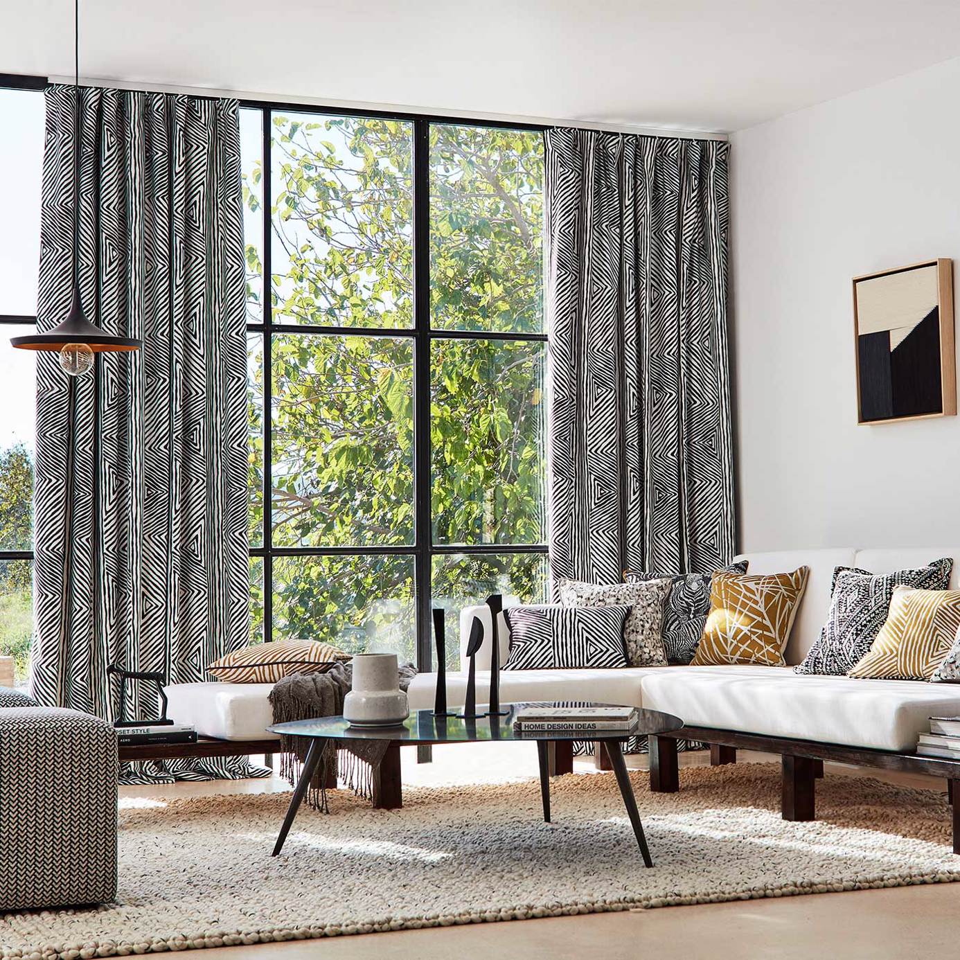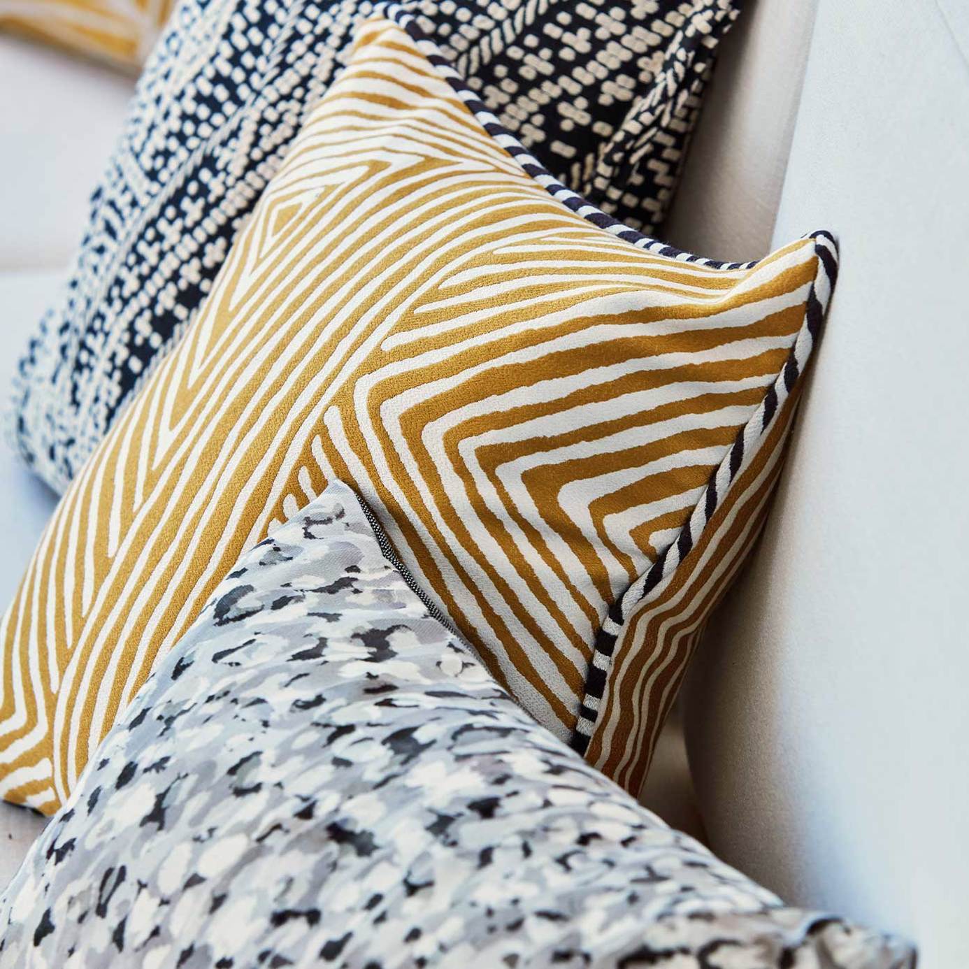 With its beautifully soft handle, zebra stripe influences triangulate on this fabulous, reversible fabric. Use Zamarra's two colourways independently or together to create a bold, interior statement.